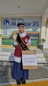 Semarang β Salah satu siswi berprestasi dari SMP Islam Al Azhar 23 Semarang, Putri Wina Kurnia Sari (Puput, kelas 9C), berhasil meraih penghargaan Student of the Month sekaligus dinobatkan sebagai Duta Azagas Bulan November 2025.