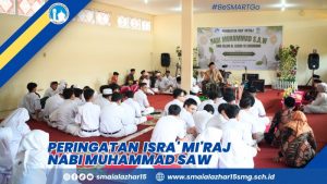 Semarang — Suasana religius dan penuh semangat mewarnai Peringatan Isra’ Mi’raj Nabi Muhammad SAW di SMP Islam Al Azhar 23 Semarang (Azagas). Kegiatan yang dilaksanakan pada Kamis, 15 Januari 2026 ini diikuti oleh seluruh murid dan menjadi bagian dari pembinaan karakter Islami di salah satu SMP Islam terbaik di Semarang.