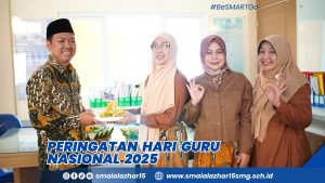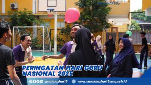 Semarang, 25 November 2025 — SMA Islam Al Azhar 15 Semarang menggelar peringatan Hari Guru Nasional (HGN) 2025 dengan penuh khidmat, kebersamaan, dan semangat apresiasi. Kegiatan ini menjadi wujud penghormatan terhadap dedikasi para pendidik sekaligus penegasan komitmen SMA Islam Al Azhar 15 Semarang sebagai sekolah Islam terbaik di Semarang dalam mencetak generasi unggul yang berakhlak mulia dan berprestasi.